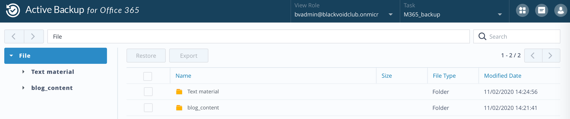Restore Active Backup content from C2