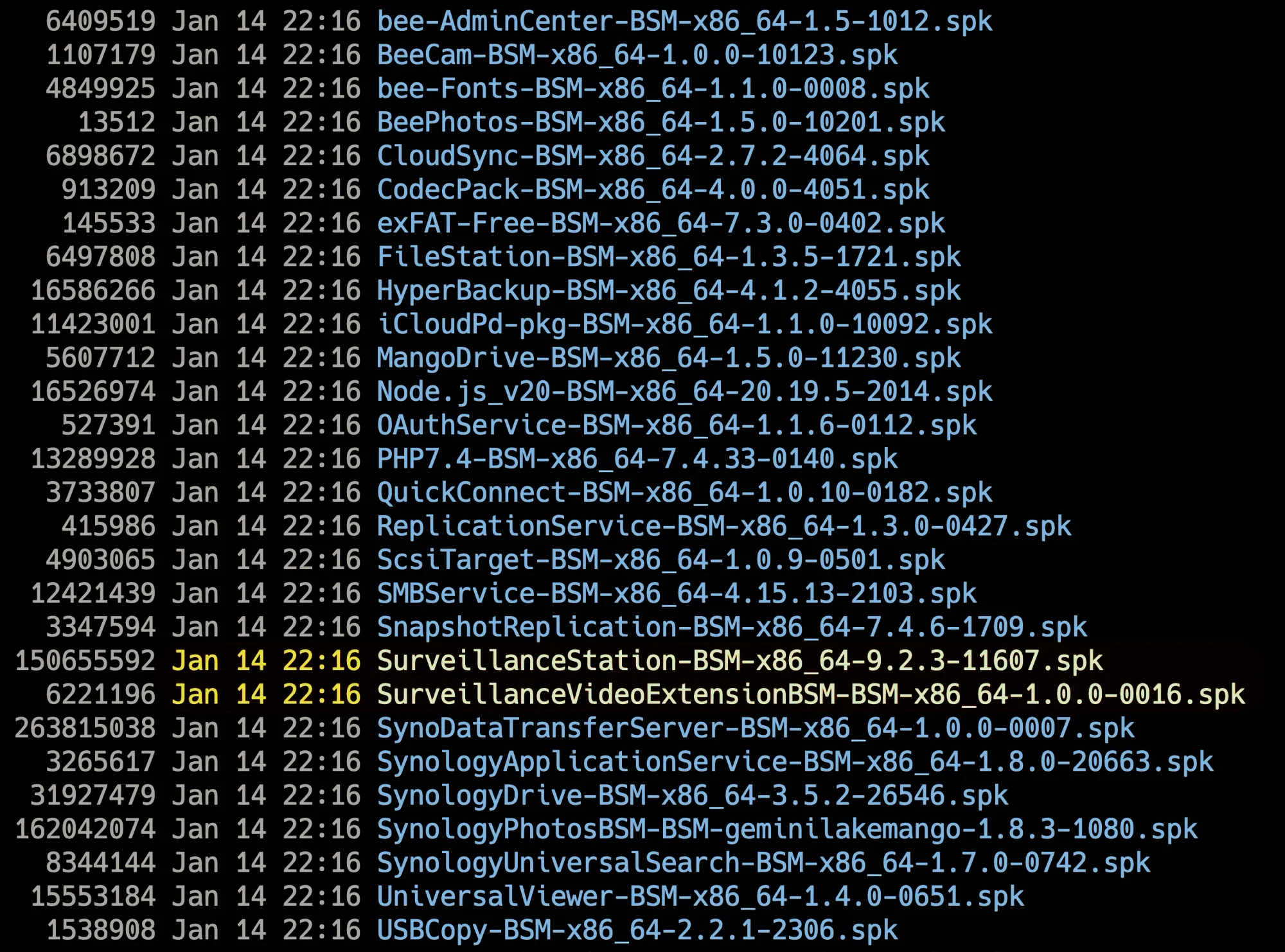 The primary upgrade, alongside updates to existing packages, is the introduction of a tailored Surveillance Station compiled specifically for the BSM platform. For this beta, Synology chose not to use the current 9.2.5 SVS version but instead opted for version 9.2.3. Additionally, the installer is approximately 100MB smaller than the full DSM version, which makes sense given that the BeeCamera Mobile app will not leverage all features of the SVS platform.