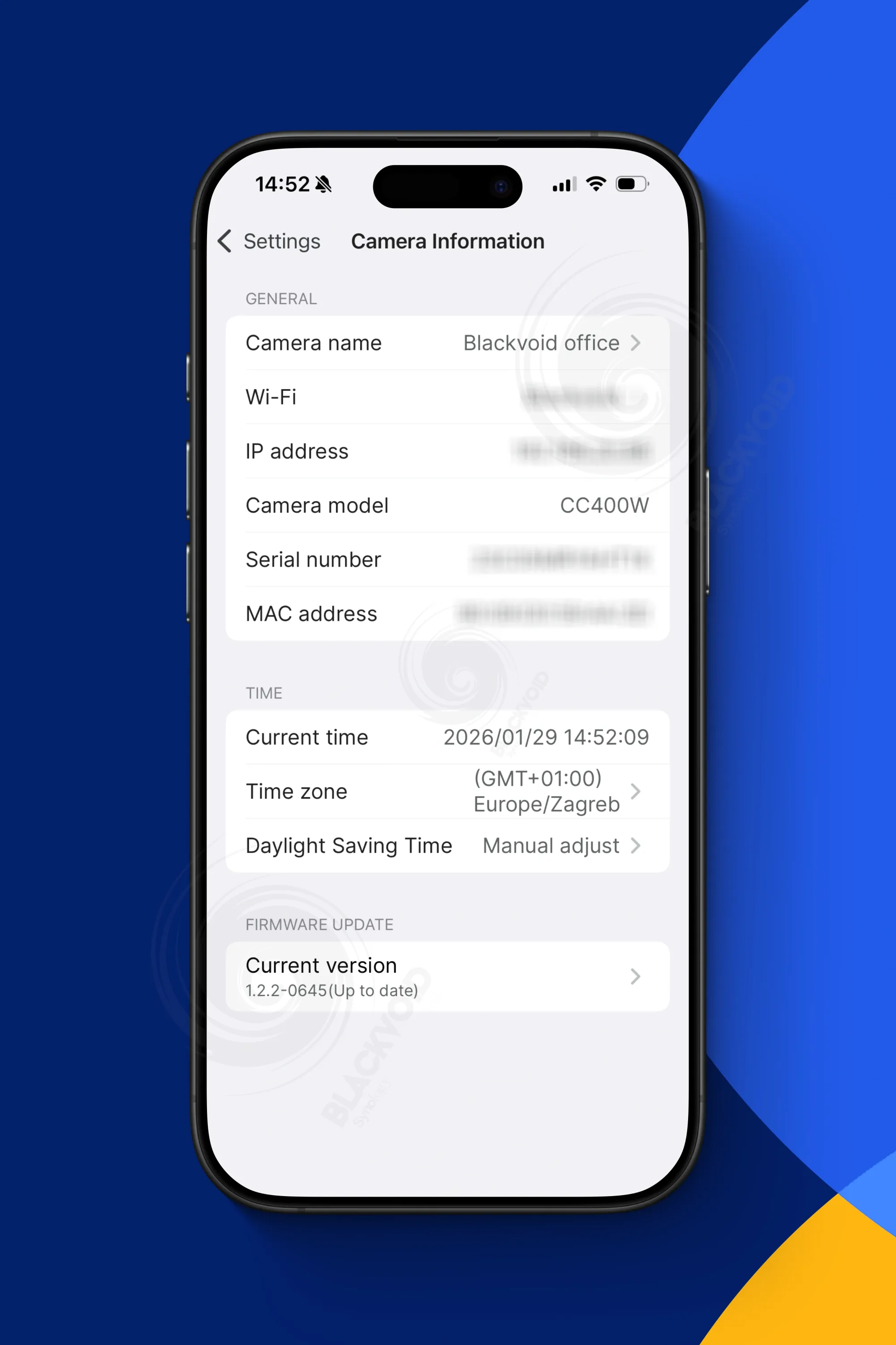 The BeeCamera will perform a firmware update if necessary. Once this process is complete, you will be able to proceed with the camera configuration and access all the settings provided by the app.