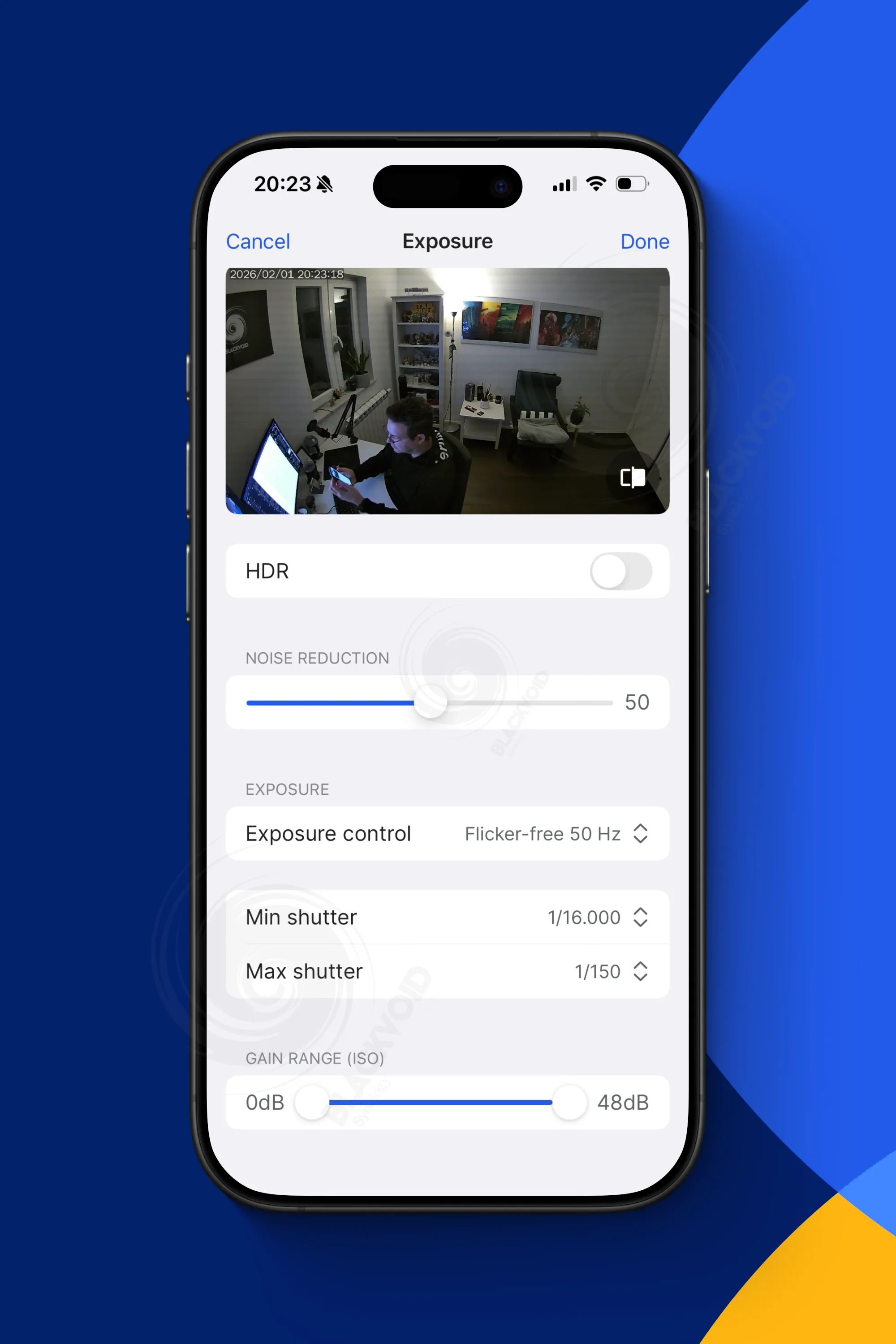 One aspect that takes longer with the BeeCamera app compared to the standard SVS client is exposure control; switching from outdoor to indoor or manual settings may require some time before the expected results are visible.
