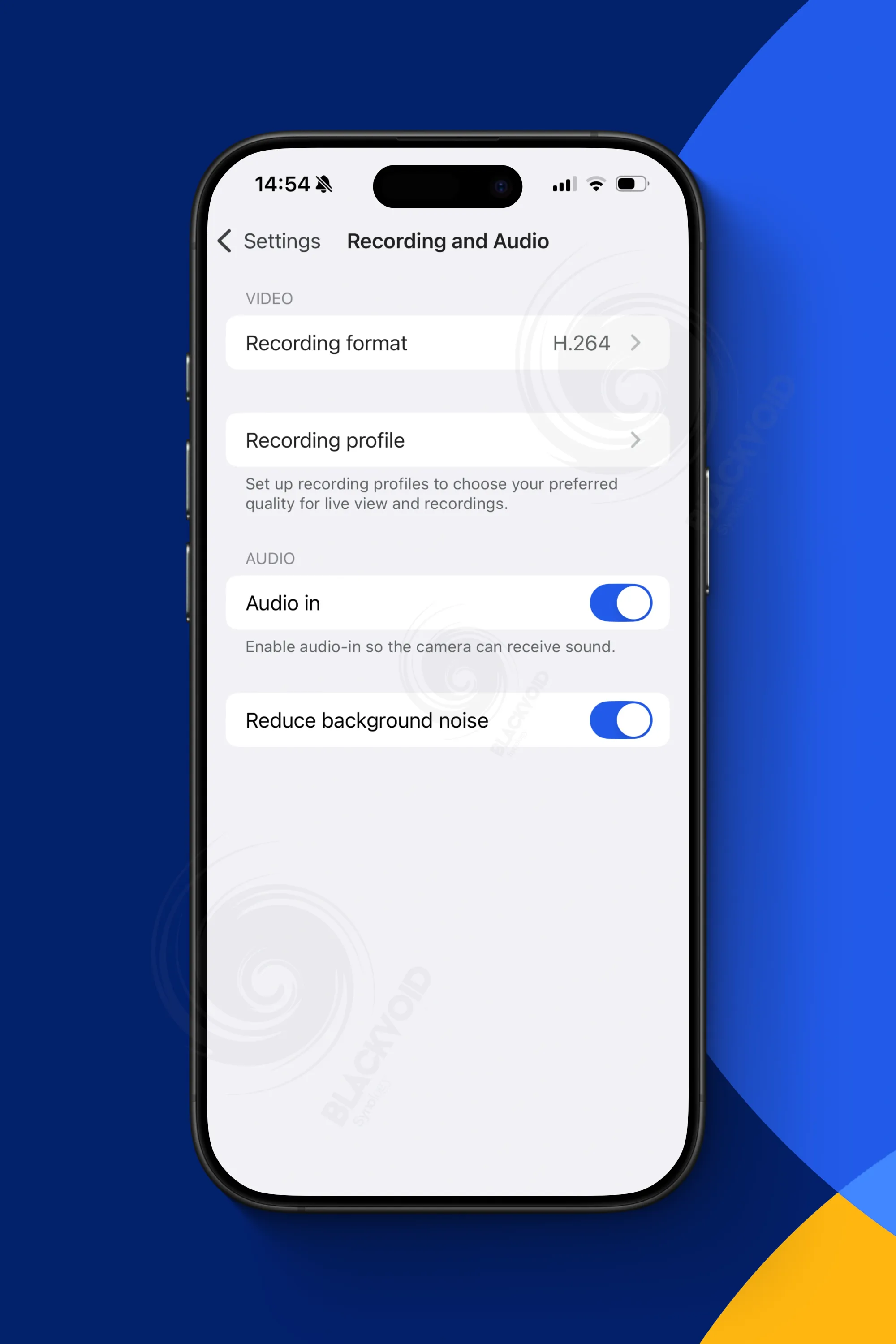 We have the option to set the recording profile, audio recordings, variable bitrate and image quality. All of these settings will have direct impact on the NAS storage capacity