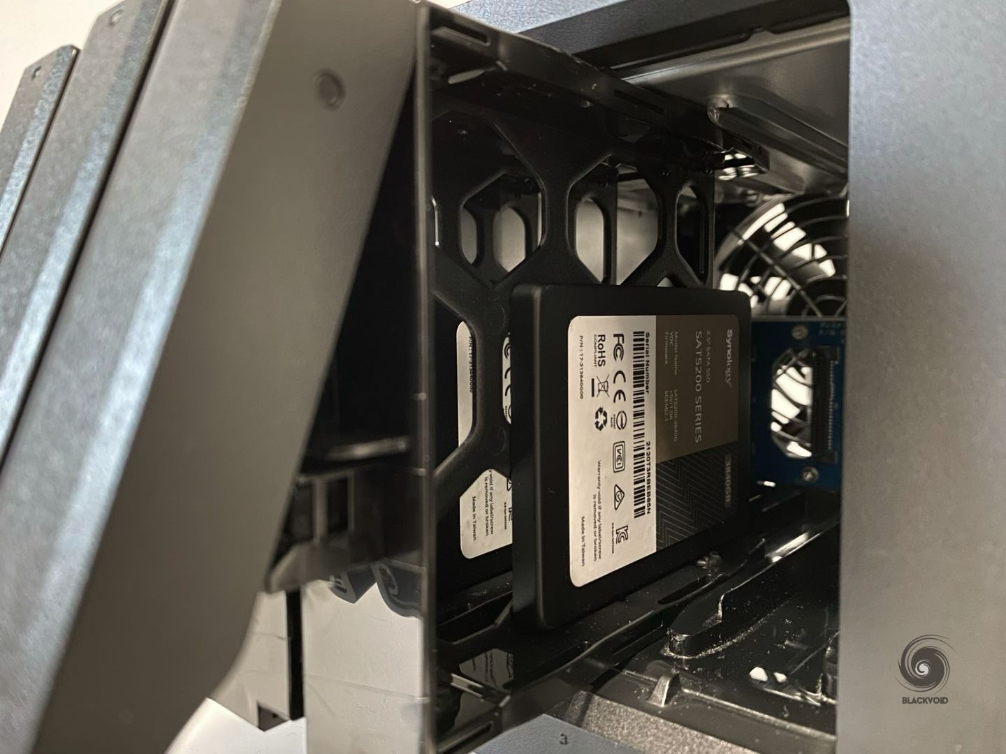 When it comes to installing the drives, the four bays can accommodate both 3.5" SATA HDDs and 2.5" SATA SSDs. As with any other drive installation, the individual bays have brackets on both sides so no screws are needed if 3.5" disks are in question.
