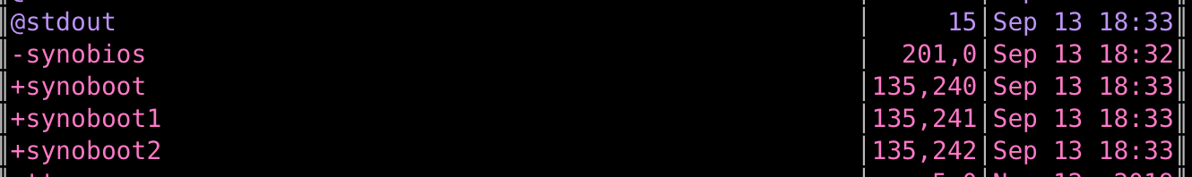 The entire "synoboot" stack was missing. This was unfortunate as this means that a simple reboot would probably end up with a "blue light" blinking and the NAS not being able to boot up at all.