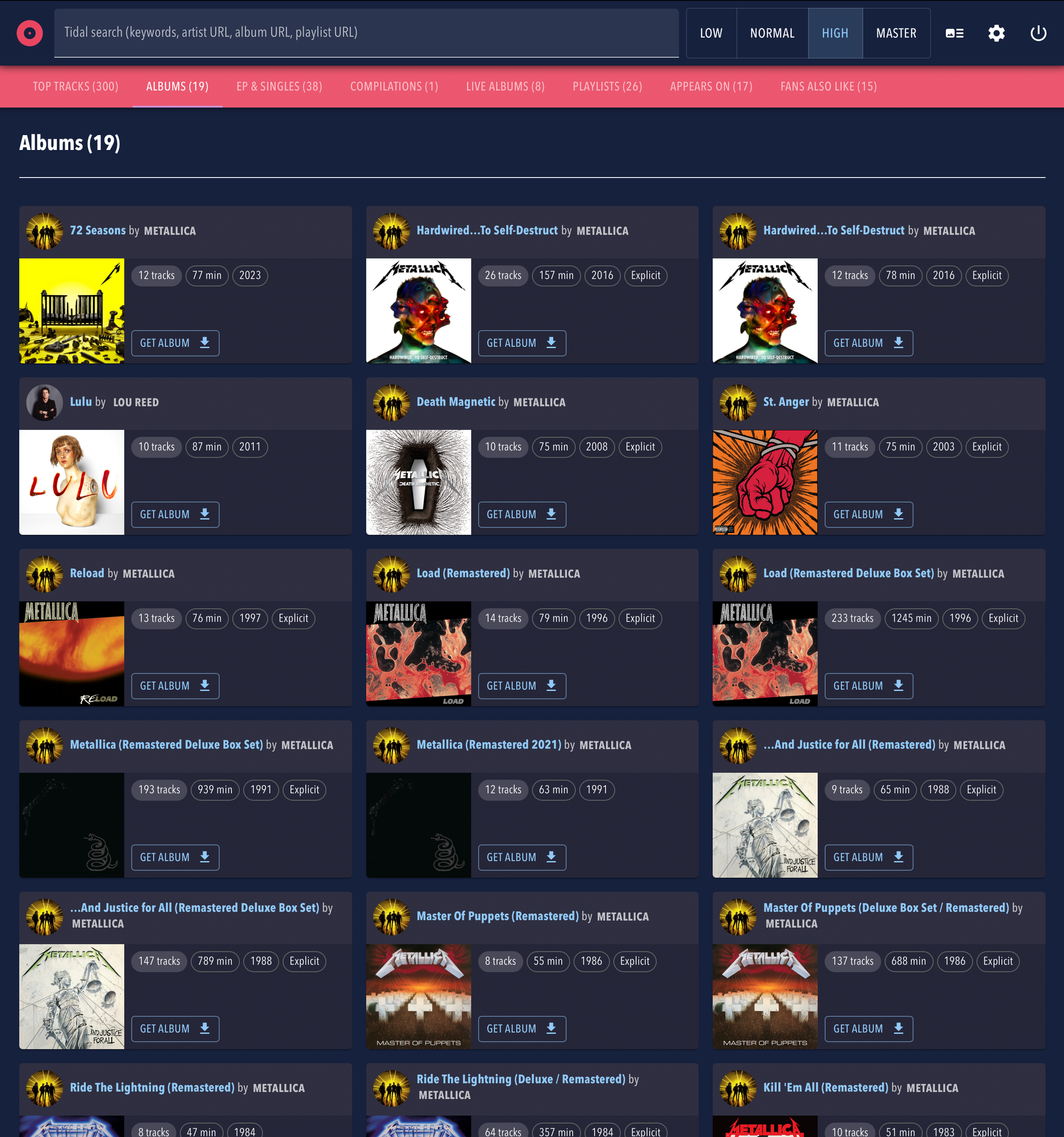 I discovered Tidarr, an open-source platform developed in React, which offers all the features I was seeking. It provides a single interface not only for downloading content for personal use but also for browsing albums, tracks, playlists, and more.